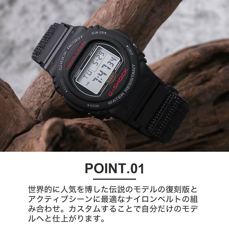 また、こちらをカスタムベースにしていただく事で今後様々なベルトに交換して「オリジナルG-SHOCK」お楽しみいただけます。
