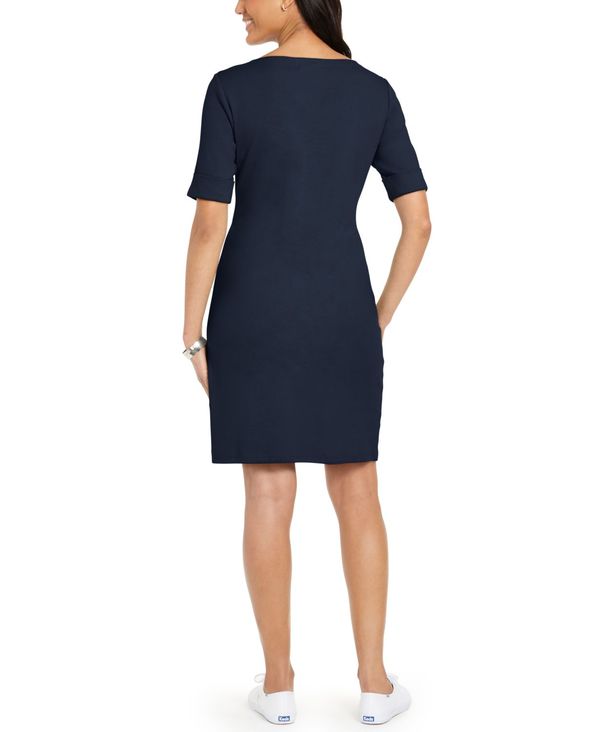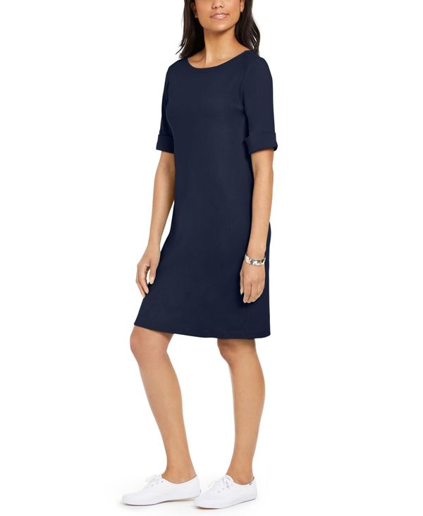 ケレンスコット レディース ワンピース トップス Petite Cotton Cuffed-Sleeve Dress Intrepid Blue